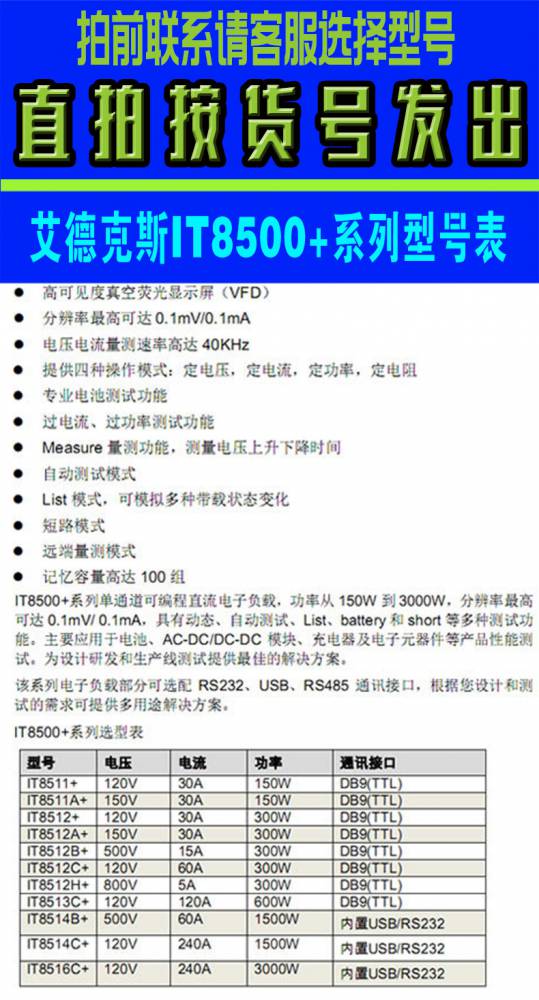 > ITECH/艾德克斯 IT8513C+ 高速高精度可编程直流电子负载